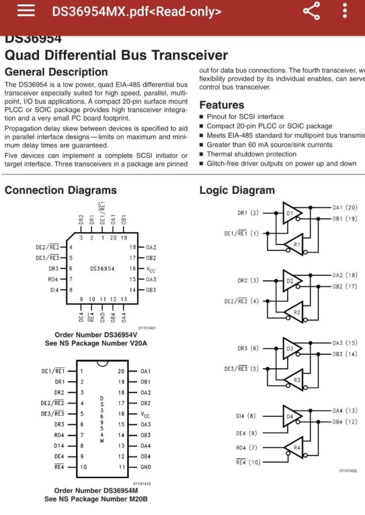 36954 از خانواده انواع آی سی راه انداز خط 422, 485 میباشد. ویژگیهای فنی این محصول براساس دیتاشیت ارایه شده از سوی تولید کننده آن به شرح زیر می باشد: